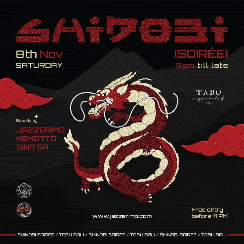 November 8 - SHINOBI AT TABU 9pm till late Tunes by: Top 10 DJs in Bali! Don't miss out! The nights you’ve been waiting for is finally here. 🔥💃🕺 TABU SUPPER CLUB.