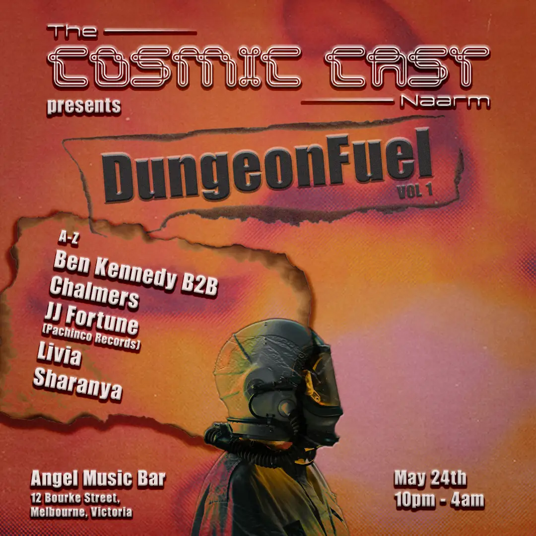 fter a resounding success at our launch party a few months ago, The Cosmic Cast proudly presents Dungeon Fuel, making its debut on May 24th at the esteemed Angel Music Bar, showcasing talented local artists from Naarm. Embark on a six-hour journey of meticulously curated music featuring sets by Livia, Sharanya, JJ Fortune, and The Cosmic Cast's very own Ben Kennedy, who will be joined by Gary Chalmers for a B2B set. Get ready to immerse yourself in a dynamic and vibrant voyage back to simpler times, as the sounds of tech house, techno, progressive, acid, and trance fill the air. Our mission is to cultivate a safe environment where you can unwind with friends, indulge in top-notch music, and savour a refreshing beer. Discrimination, racism, and sexism have no place here. We prioritise the safety and well-being of all attendees and expect everyone to consume alcohol responsibly. Any disruptive or disrespectful behaviour will not be tolerated, and those who engage in such conduct will be promptly escorted out. We acknowledge that this event is taking place on traditional land and pay our respects to the original custodians, the Wurundjeri people, both past and present.