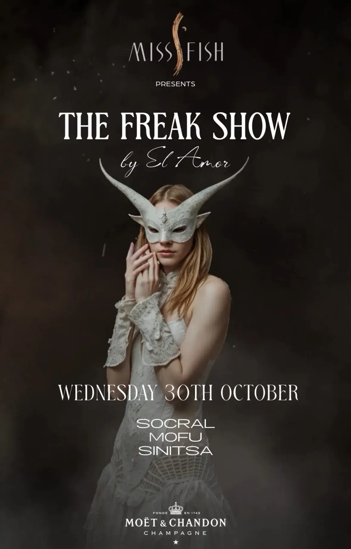 Get ready for an unforgettable night at The Freak Show presented by el Amor! Join us for an evening filled with exciting performances and vibrant energy. Featuring an incredible lineup of talent, you'll enjoy performances by Mofu and Sinitса, who will keep the atmosphere lively and entertaining throughout the night. Don’t miss out on this unique experience—mark your calendars for October 30 and come join the fun!