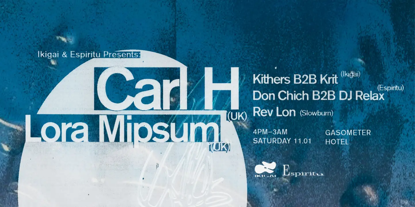 Espiritu and Ikigai are excited to welcome Carl H and Lora Mipsum all the way from London for a summer sonic ceremony. Progged-out oddities, trance-laden artefacts, magic psychedelic trippers and genre-defying dancefloor peculiarities. Animals On Psychedelics label head and DJ for over 20 years, Carl H makes his Australian debut. Spellbinding crowds all over the world Carls mind-melting sets are one to behold. Regularly closing out festivals with Jane Fitz and pounding the world’s best dancefloors, Carl’s eclectic sonic range, deep depth of electronic music knowledge and surgical mixing traverses all dance environments seamlessly. Lora Mipsum has elevated dance floors across the UK, Europe and beyond and makes her anticipated return down under. Effortlessly traversing the 90's and 00's, she cements herself in the psychedelic stratosphere of the dance music world. Boss of re-issue label Slush and co-host of the esteemed WHOMP parties in the UK, Lora Mipsum is a regular face at Dimensions, Macadam, Pickle Factory and Breakfast Club Amsterdam to name a few. Joining us is local heavyweight Rev Lon, alongside Espiritu and Ikigai hosts Don Chich, DJ Relax, Kithers and Krit. With some serious programming happening, it's encouraged to strap in for a long journey while we matchmake the British and Australian dancefloor at The Gasometer.