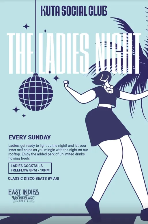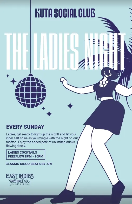 Join us for Ladies Night at Kuta Social Club Bali, happening every Sunday. Indulge in an evening of luxury where ladies can enjoy free-flowing cocktails from 8 PM to 10 PM. Treat yourself to an array of delicious drinks while soaking in the vibrant atmosphere of Kuta Social Club. It's the perfect way to unwind and celebrate the weekend with your friends!