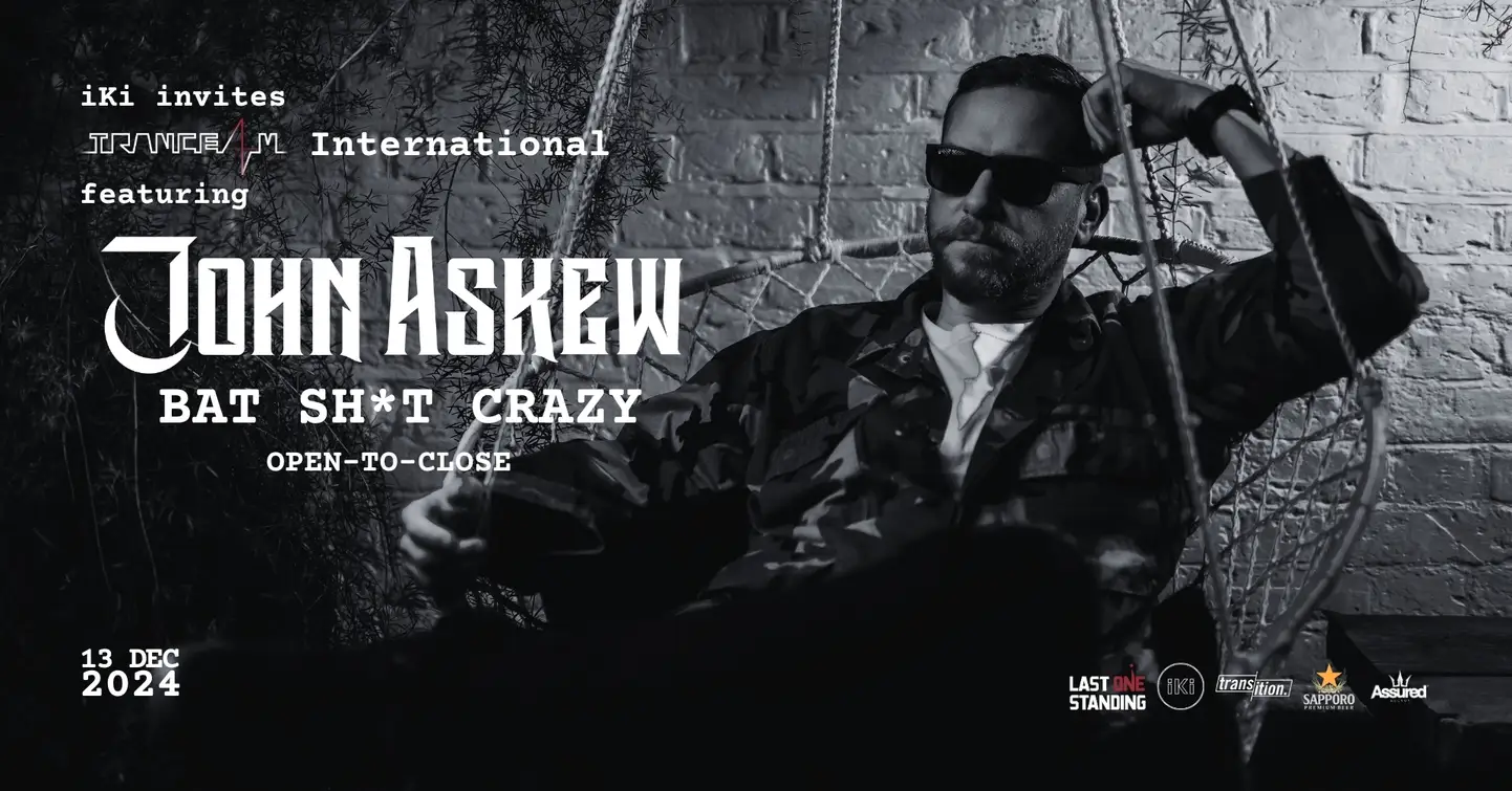 LET'S GET BAT SH*T CRAZY!!! Join us on the 13 Dec 2024 at our favorite playground, iKi Singapore, for our final TRANCE4M International installation of 2024, as the legendary John Askew returns to Singapore, with an Open-to-Close Journey! So... WHO THE HELL is John Askew: Having gained recognition with his debut single "Vellum" back in 2001, John has since been a highly sought after tech-trance artist in the scene. John began his musical career in rock bands but shifted to electronic music after attending a rave in Cornwall in 1993. He made his club debut in 1994 at a notorious Acid House venue in North London and soon became a resident DJ for the “Code Red” sound system in Wiltshire, attracting thousands of underground fans. His sound blended melodic German trance with harder percussive elements. Over three decades, John Askew has become a prominent tech-trance producer and DJ, known for his energetic performances and as a rare DJ to record an Essential Mix for BBC Radio 1. He has released numerous hits, remixes, and albums through top labels like Armin van Buuren's Armada, Aly & Fila's Future Sound Of Egypt, John O'Callaghan's Subculture, and many more. In 2000, John embarked on a touring residency with Universe alongside renowned DJs like Carl Cox, Carl Cox, Timo Maas, Danny Rampling, Danny Howells, Way Out West and John "00" Fleming. Later the same year, he also performed on the main stage at the Ministry of Sound's millennium event at the Dome on New Year's Eve, captivating 26,000 attendees with his technical skills and culminating in a two-year residency at the Ministry of Sound in London, where John became known for his legendary closing sets in the main room. In 2021, John released his 13th mix compilation, Dusk Till Dawn, which topped the Beatport main album chart for five weeks, outperforming all trance, house and techno albums during that time. This success highlights the significant impact and popularity of his work and the VII label. Being the founder and head honcho of VII, which showcases innovative trance music from various artists signed to it (Simon Patterson, Will Atkinson, HIMSELF, AA Meeting, Greg Downey, Orkidea and Activa, and NIFRA recently joined the lineup), John has been influential and dominant in the underground electronic scene, being one of the main stakeholders in the scene. In fast forward mode John Askew has been conquering dance floors all around the world. John has played at high profile clubs nights, such as Cream, Plus Soda, Meganite, Slinky, Godskitchen, After Hour Power, and Passion as well as at prestigious festivals, e.g. Homelands (Radio One Stage), Luminosity Beach Festival, A State of Trance, UnKonscious Music Festival, and Creamfields. His DJ sets reflect his highly opinionated views on music, with an ear for high quality music. Unlike the obvious anthemetic route, his take is subtle, yet with highly emotive melodies, derived from years of song writing in a plethora of rock bands, making each and every one of John’s sets unique. Just a few days ago on 27th of September marks the release of John's much-awaited studio album "A Room Full of Pros and Cons", packed with a wide array of tracks and featuring collaborations with rising stars of the likes of Lyonheart, Shelby Merry, Manika Kaur, and SinfulBiz.