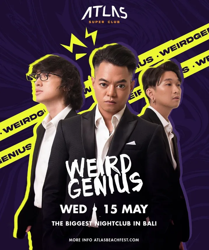 Weird Genius Live at Atlas Superclub Bali Date : Wednesday, May 15, 2024 Get ready for an electrifying night as Weird Genius takes the stage at Atlas Superclub Bali! Join us on Wednesday, May 15th, for an unforgettable performance that will leave you mesmerized. Experience the unique blend of music genres and innovative sounds that Weird Genius is known for. From their chart-topping hits to their infectious energy on stage, it's a night you won't want to miss. General admission tickets are available for 150k. Don't miss your chance to witness Weird Genius live in action!