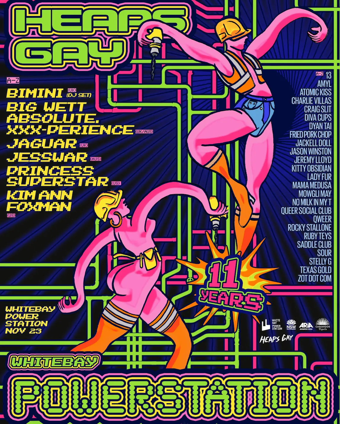 Sydney Party Starters Heaps Gay are throwing their 11th Birthday inside an old industrial powerstation across 3 stages. Heaps Gay brings together the orginal Brat, Princess Superstar with her iconic banger " Perfect Exceeder, drag UK Royal T, Bimini, BBC Radio 1's darling DJ, Jaguar, who plays tracks for the hunnies, dance floor icon Kim Ann Foxman, House music legend Absolute b2b with Naarm based party girl Big Wett + loads more Australian artists for a big old party & everyone is welcome.