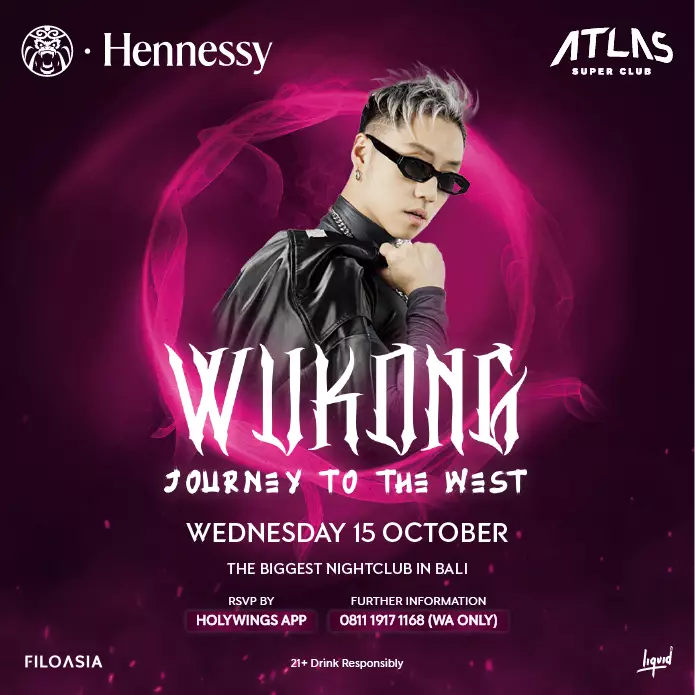 ATLAS SUPER CLUB On Wednesday, October 15, Atlas Super Club welcomes Wukong, the Singaporean producer and DJ who's redefining electronic music with his unique style of Oriental Rave. Known for fusing Asian ethnic elements, Chinese cultural roots, and heavy-hitting dance music, Wukong has taken festival stages and clubs worldwide by storm. His sets aren’t just music… they’re an experience — a journey that bridges tradition and modern rave culture with unstoppable energy. In this edition, Hennessy collaborates with cultural icon Wukong to celebrate creativity across music, art, fashion, and culture — reflecting the brand’s multifaceted spirit and bringing its versatility to life on the dance floor. Guests who purchase a Hennessy bottle package will also receive exclusive Hennessy x Wukong Merchandise, making the night even more unforgettable. This October, he’s bringing that same explosive energy to Bali’s Biggest Nightclub for a night of raw beats, bold drops, and an atmosphere you won’t forget. 📅 Wednesday, October 15 — doors open at 9 PM 🎟 Tickets available now — secure your spot and be part of this cultural-meets-clubbing experience! *General admission holder will get 1 glass of Henny Tea