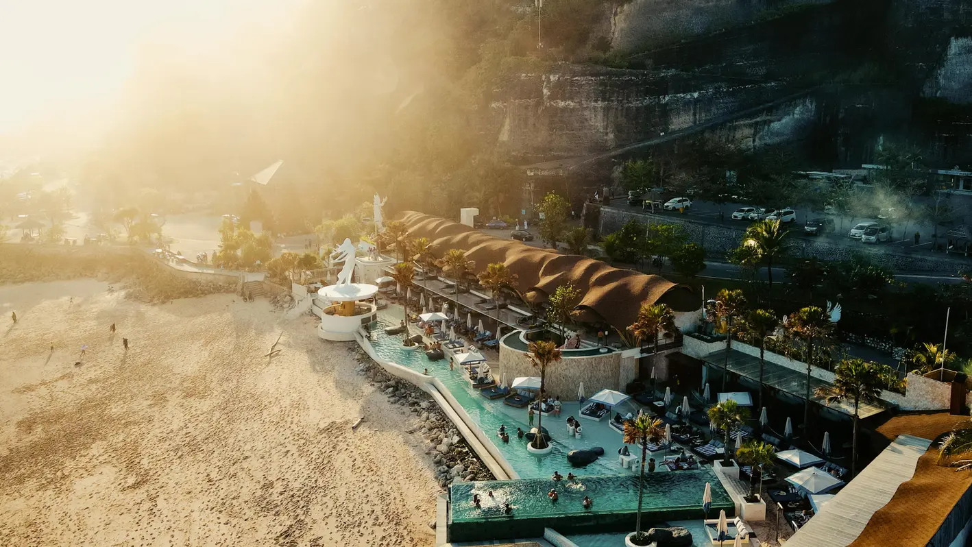 One of Bali's most popular beaches, Melasti Beach, is where Tropical Temptation Beach Club is located. Local designers created an immersive bamboo structure that pays homage to our artisanal Balinese history. Unobstructed views of Melasti's magnificent beach provide a striking vantage point for Tropical Temptation Beach Club. Find a fresh and energizing atmosphere as the sun gives way to the moon, snuggle into the comfort of a daybed or sofa, and enjoy an aperitif or TT Beach Club signature cocktail together with locally inspired food as a live daily DJ sets the tone for partying.