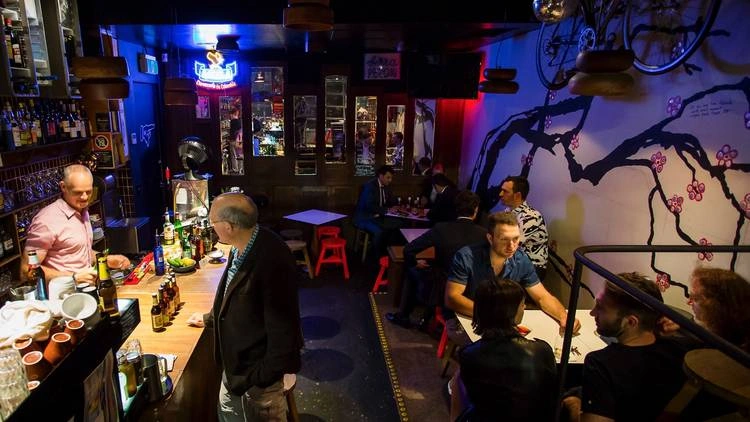 York Lane Cafe Bar Sydney, Coffee, lunch and tapas in hip, black-tiled laneway bar with split-level seating and vinyl records.