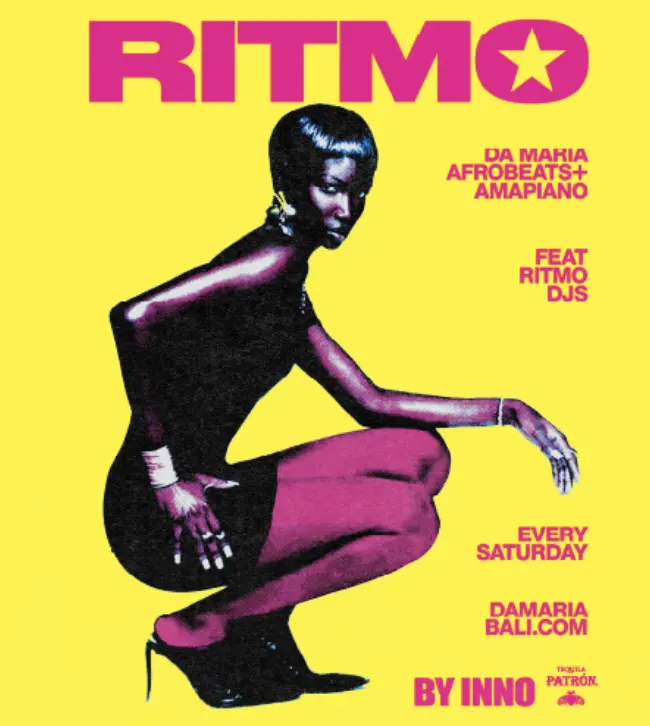 RITMO Saturdays DA MARIA PRESENTS, RITMO BY INNO - Afrobeats + Amapiano Join us Every Saturday at our Afrobeats and Amapiano vibes event— RITMO by INNO. With an epic lineup featuring RITMO Resident DJs, come celebrate, feel the rhythm, and get grooving. Dinner service from 5pm. Dinner + bottle service from 8:15pm. DJs on from 9pm. Bottle service from 10pm. Bookings essential.